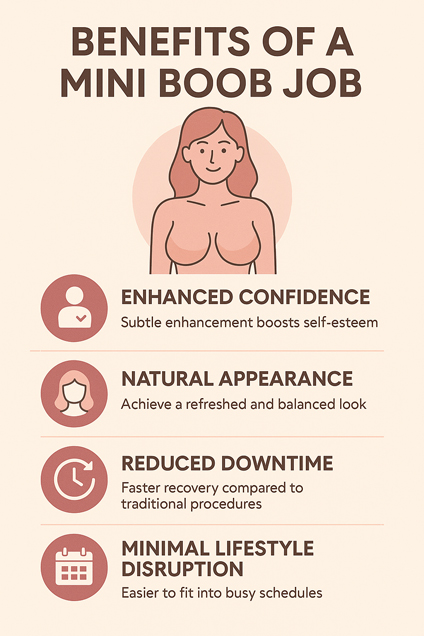 Another important benefit is the reduced downtime. Because smaller implants typically involve less tissue disruption, the recovery process is generally faster and less demanding. Women who maintain busy schedules find this especially appealing. For many, the ability to achieve meaningful improvement without significant interruption to their daily lives makes the Mini Boob Job an ideal solution.